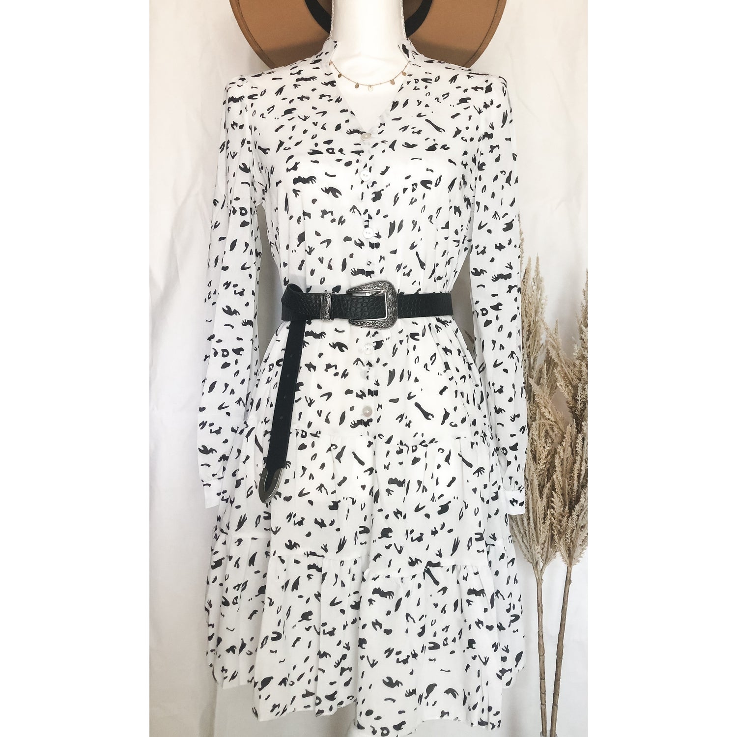 Details: Fresh and flowy button down leopard print dress. Item Runs small.