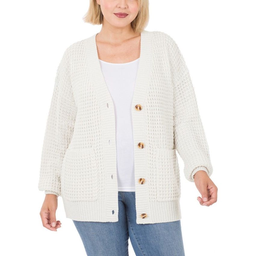 Details: WAFFLE CARDIGAN SWEATER WITH POCKETS - RELAXED FIT - LOW GAUGE HEAVY WEIGHT - GOOD QUALITY - BUTTONS ARE FUNCTIONAL